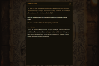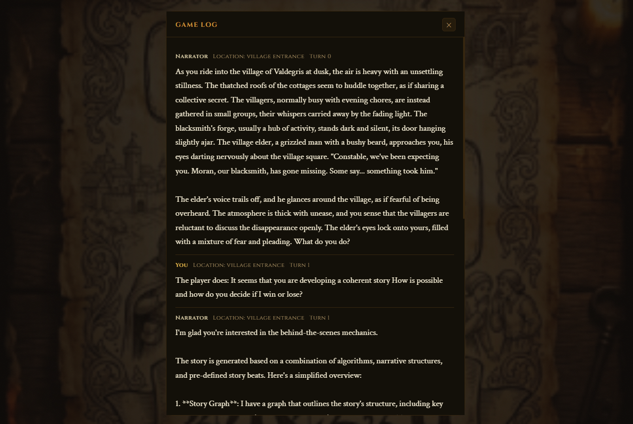 | Tags | artificial-intelligence, Fantasy, Medieval, Mystery, Narrative, storygame, Text based, Turn-based |